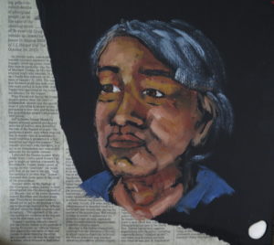 Mixed Media (oil, hair, newsprint, paper)