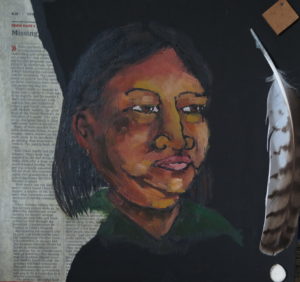 Mixed Media (oil, newsprint, leather, feather, horn)