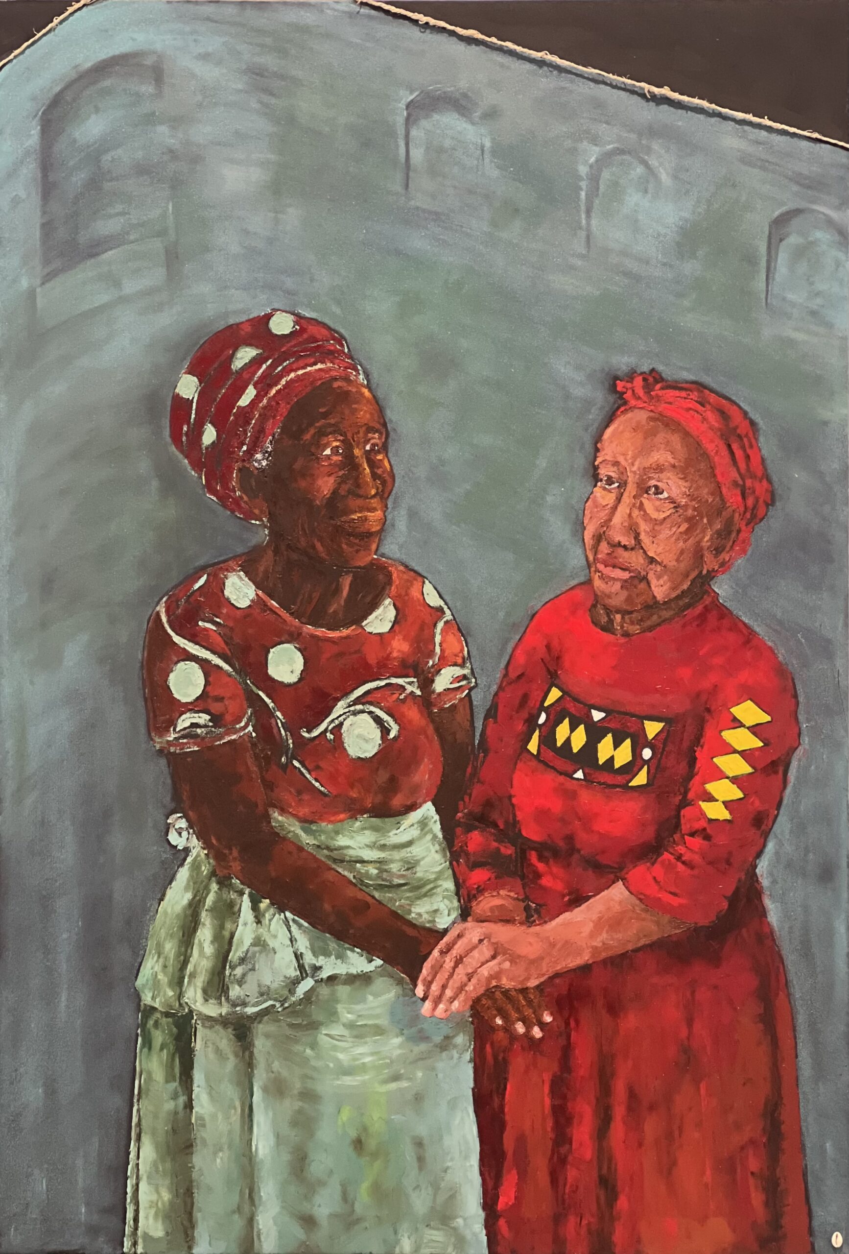 Mixed Media (Oil, fabric, hair, cowrie)